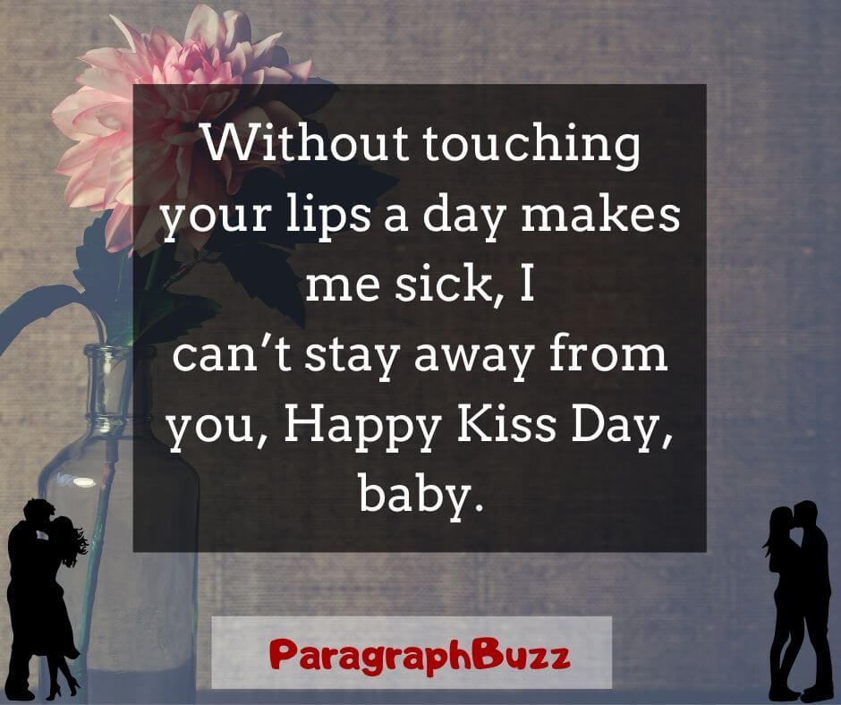 5. Without touching your lips a day makes me sick, I can’t stay away from you, Happy Kiss Day, baby.