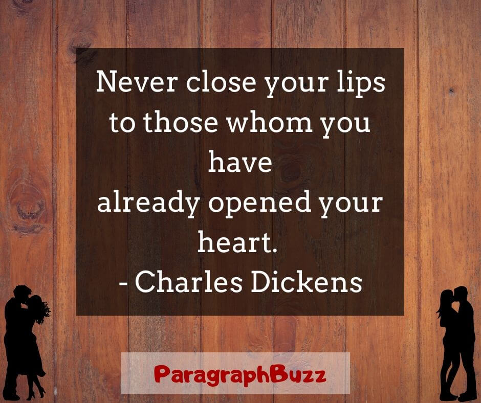 2. Never close your lips to those whom you have already opened your heart. – Charles Dickens